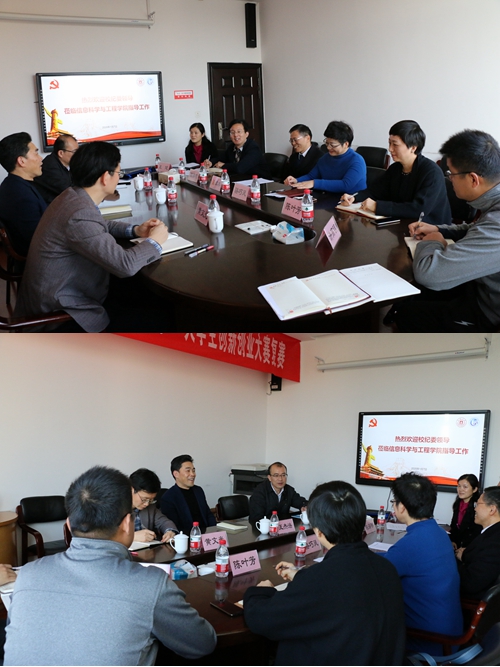 党委书记骆巧凤简要汇报了党委换届、纪委委员队伍、标杆院系建设、党建双融双创等情况。学院院长夏银水介绍了学科发展、专业建设、本硕博招生、科研教学及特色平台搭建等情况。