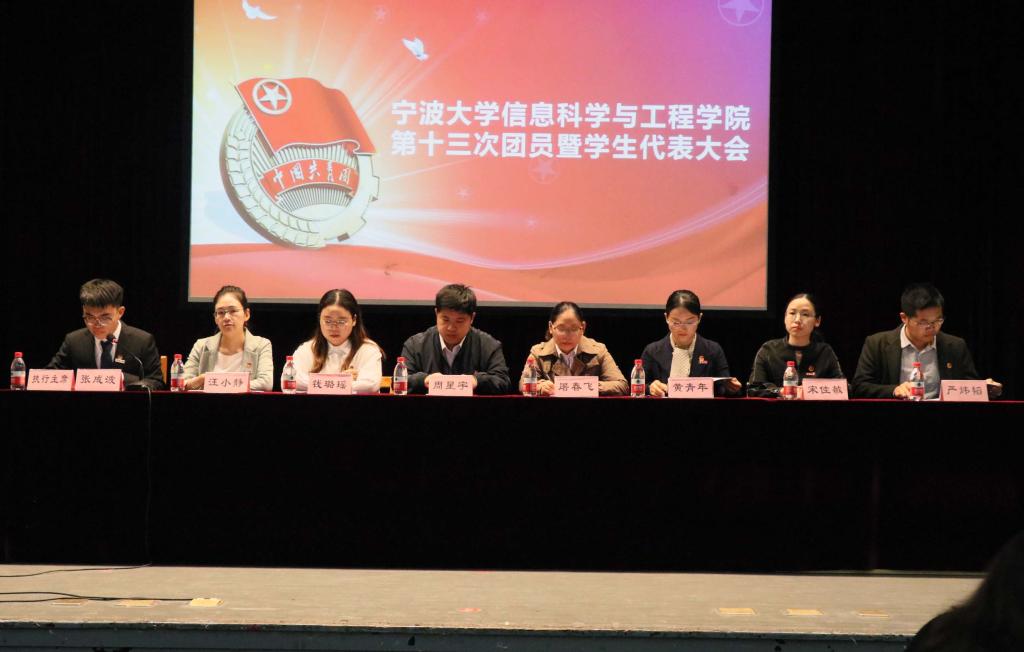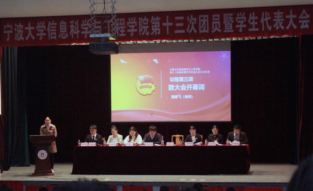 第十三次团员暨学生代表大会在锦绣小剧场顺利召开。信息学院党委副书记屠春飞老师、校团委副书记周星宇、校学生会主席钱璐瑶、各学院团学代表;院学工办辅导员黄青年、汪小静、宋佳敏、严炜韬和及全院学生代表出席了本次大会。
