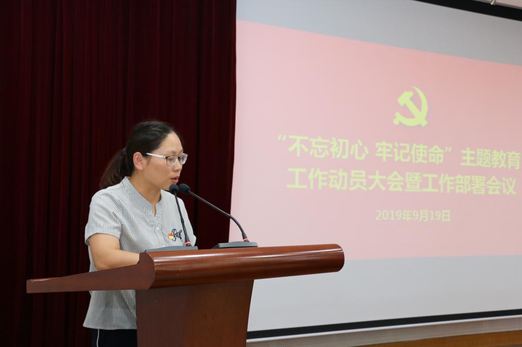 信息学院党委书记骆巧凤传达学习了学校“不忘初心、牢记使命”主题教育工作会议上的会议精神,并对与会师生党员作了主题教育动员。