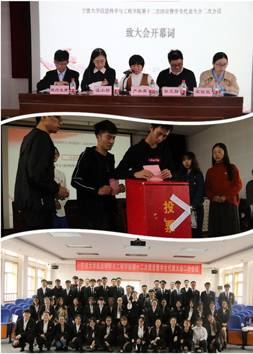 第十二次团员暨学生代表大会二次会议在信息学院五楼报告厅顺利召开。信息学院学生工作负责人、学工办团委负责人;信息学院各班级、党员之家、宿管会、研究生会学生代表以及全院共158名学生代表出席了本次会议。