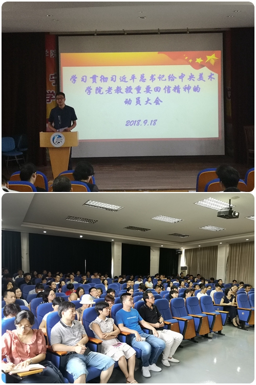 9月19日,信息学院党委组织学习贯彻习近平总书记给中央美术学院老教授重要回信精神的党员学习大会,学院党委委员、教职工党员、学生党员180余人参加了学习会。