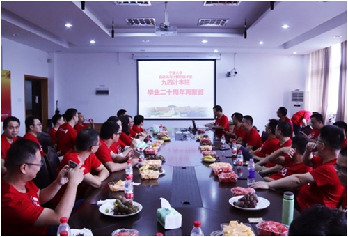 时隔20周年,老同学们再次来到母校,再次来到信息学院,心中不禁感慨万千。在信息楼313会议室内,贴心的班长早早地为大家准备好了小吃和水果。伴随着校歌声声,同学们纷纷入坐。光阴似箭,日月如梭,首先班长用幻灯片的形式带大家回想起了大学时光的点点滴滴。老照片放映着,同学们看着回忆满满,仿佛回到了20多年前的热血年少时。接着每个同学和大家讲述了自己的现状以及这么多年来的感慨。随后各位校友游览了校园的各个角落,追忆着青春的足迹。在大踏步合照之后,同学们共赴晚宴地点,见到了班主任和辅导员等。