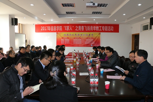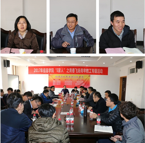12月6日上午,信息学院在313会议室举办“E家人”之青春飞扬青年教工专题活动。活动由院党委书记林奇凯主持。校宣传部副部长张芝萍、校人事处副处长余怡春以及信息学院院长夏银水等党政领导、分工会主席和教务办负责人及学院2011年1月份以来引进的新教师参加了活动。