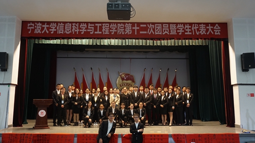 第十二次团员暨学生代表大会在锦绣小剧场顺利召开。校团委副书记周星宇老师、信息学院党委副书记屠春飞老师、以及信息学院学工办辅导员、校学生会主席学生会代表、信息学院各班级学生代表以及各兄弟学院的学生代表出席了本次大会。