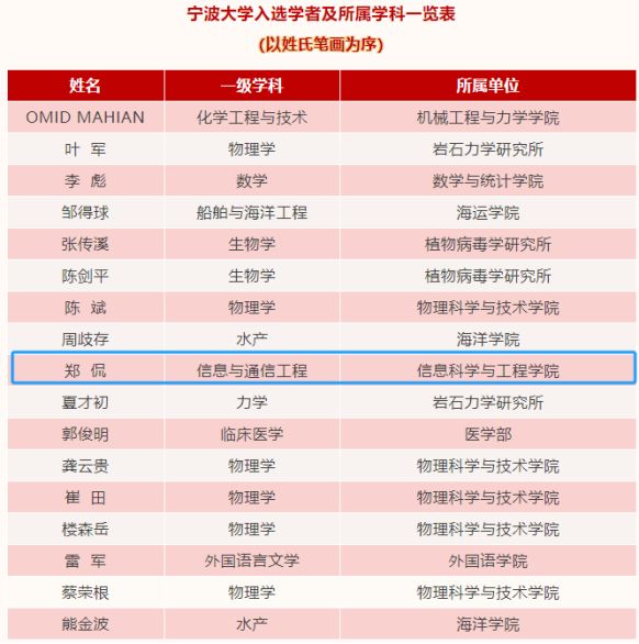 郑侃教授成功入选。
