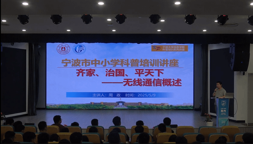 信息学院科普宣讲团成员周政老师赴宁波世外学校为八年级学生讲授“科普知识”系列讲座第4讲——无线通信概述。