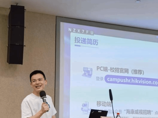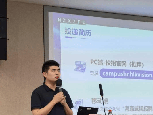 随后,校园招聘经理郭星甫介绍了本年度海康威视“超新星实习生招聘”项目,包括项目定位、岗位设置、人才培养路径及发展前景。该项目为高校学生提供了深入接触企业业务、快速成长的平台,引起了在场同学的广泛关注与咨询。