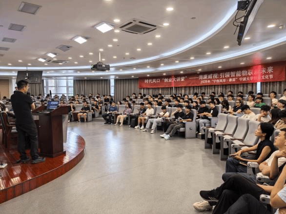 隆重举办了“宁创风华·春苗”创业文化节系列活动之一——“时代风口”创业大讲堂。本次活动邀请到全球领先的智能物联解决方案提供商——海康威视团队到校进行主题分享与互动交流。