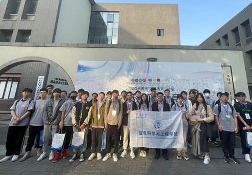 王让定老师(院旗中间)到现场与参赛师生合影