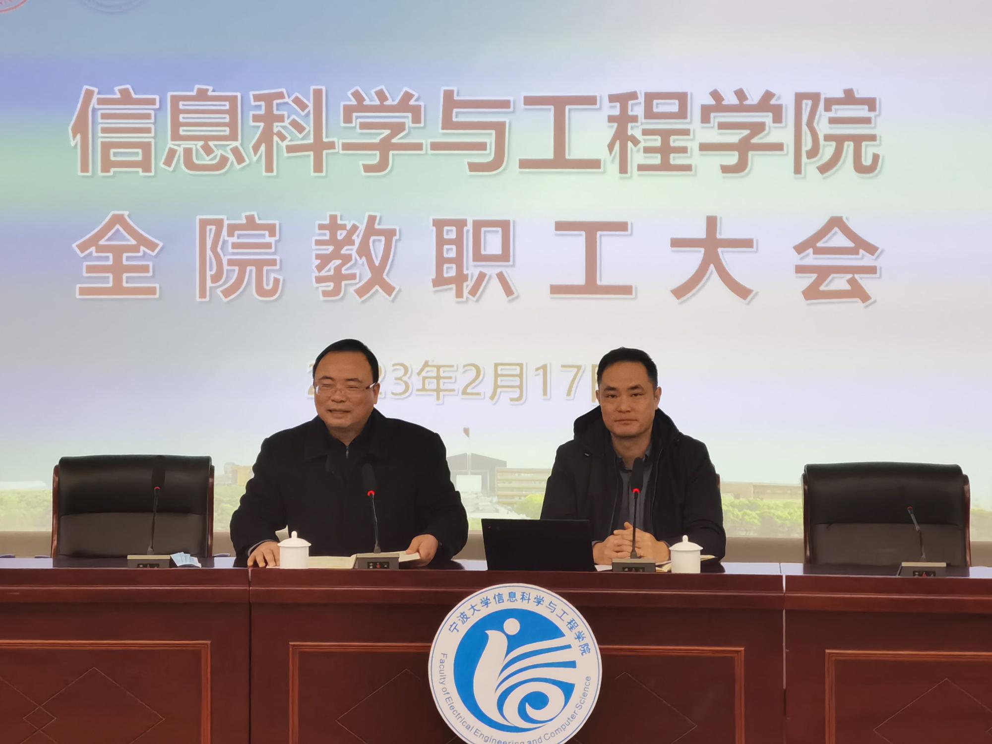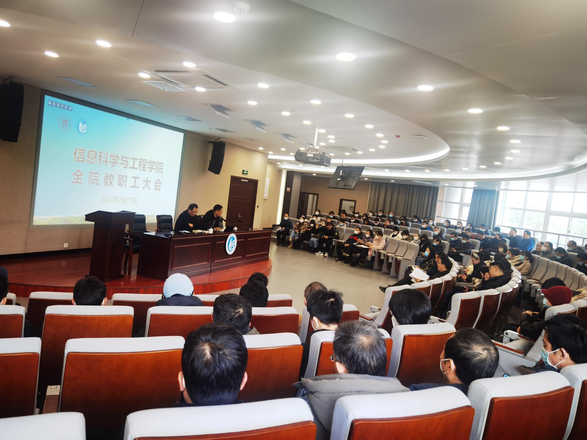 2月17日上午,信息学院在杨咏曼楼报告厅召开新学期全院教职工大会。学院党政领导和全院教职工参加了会议。院党委书记王伦耀主持会议。