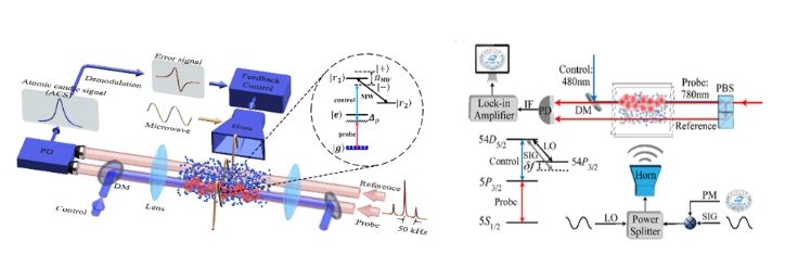 传统的微波电场测量系统主要由金属天线和微波电路组成,在溯源和测量精度方面存在局限,且传统天线接收带宽受到其尺寸限制(Chu 极限)。近年来,随着量子传感逐渐成为量子科学技术领域中一个独特且发展迅速的研究分支,许多研究小组纷纷关注基于里德堡原子的微波电场传感器。