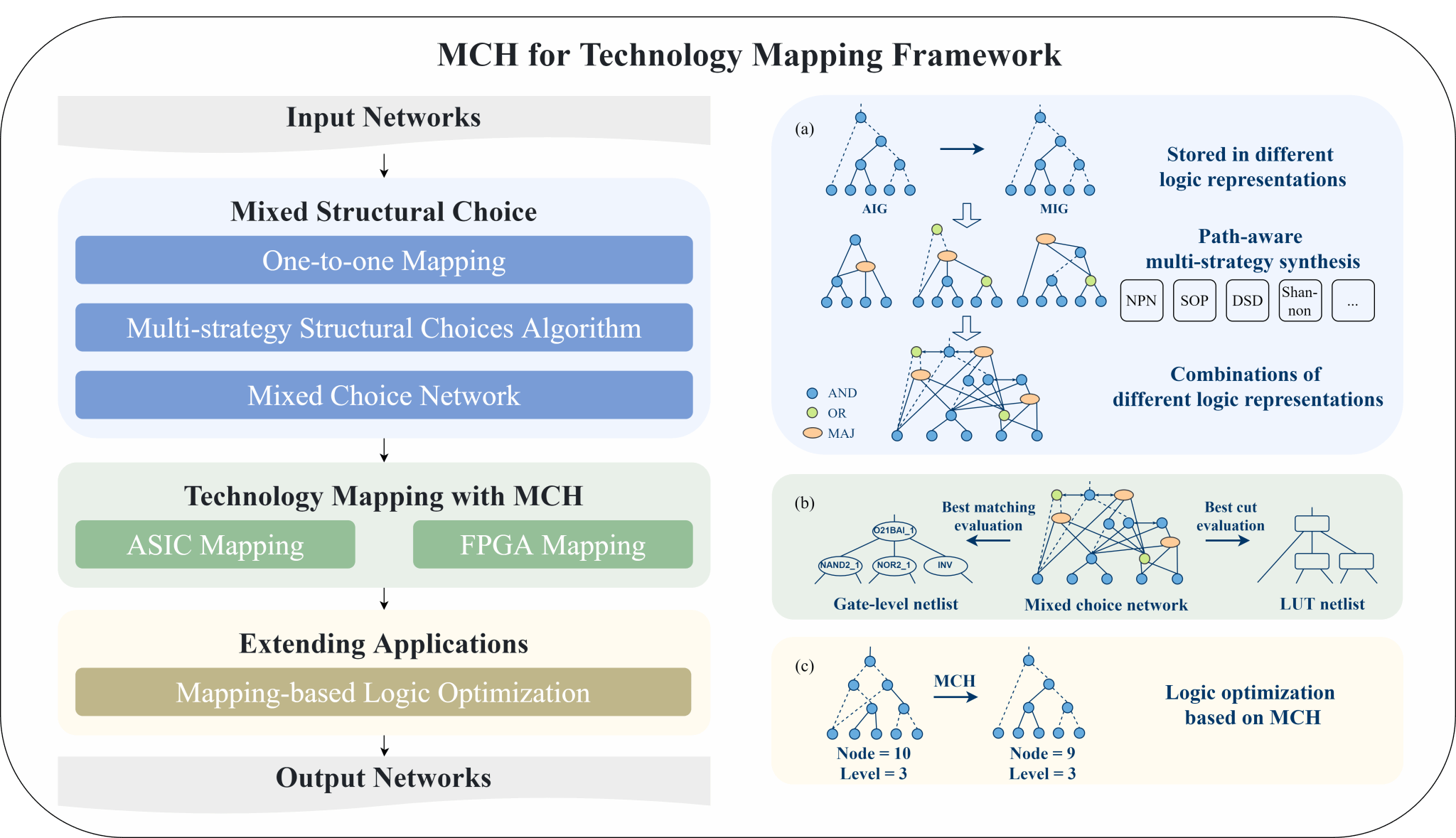 论文 “Mixed Structural Choice Operator: Enhancing Technology Mapping with Heterogeneous Representations”聚焦EDA流程中逻辑综合阶段的工艺映射算法研究,提出了一种基于异构逻辑表示的工艺映射方法,利用混合结构选择融合不同逻辑表示的结构特征,从而提升工艺映射的结果质量。在现场可编程门阵列(FPGA)工艺映射方面,该论文提出的方法在EPFL Combinational Benchmark Suite’s Best Results Challenge榜单中刷新了多项已有最佳记录,该榜单由瑞士洛桑联邦理工学院(EPFL)维护,吸引了美国加州大学伯克利分校、康奈尔大学、犹他大学、西班牙加泰罗尼亚理工大学、复旦大学、上海交通大学、华为、新思科技(Synopsys)等全球顶尖高校和企业参与竞争。